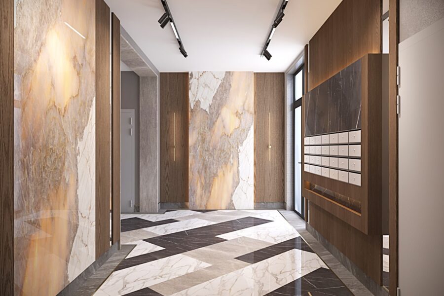 Eleganța începe acolo unde standardele înalte întâlnesc funcționalitatea. Acestea se reflectă în toate componentele proiectului: finisaje interioare, spații comune și fațadă. Zona de acces și casa scării au fost concepute cu grijă, dar și cu produse de calitate, pentru a oferi o experiență plăcută și pentru a păstra eleganța în timp, fără a diminua utilitatea spațiilor rezidențiale.
